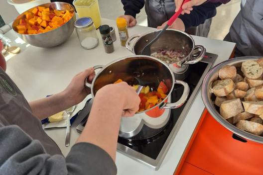 Im Fach Wirtschaft und Recht durften wir, die Klasse 8c, eine ganz besondere und vor allem praktische Erfahrung machen: Gemeinsam mit unseren Lehrerkräften haben wir eine Kürbissuppe zubereitet.